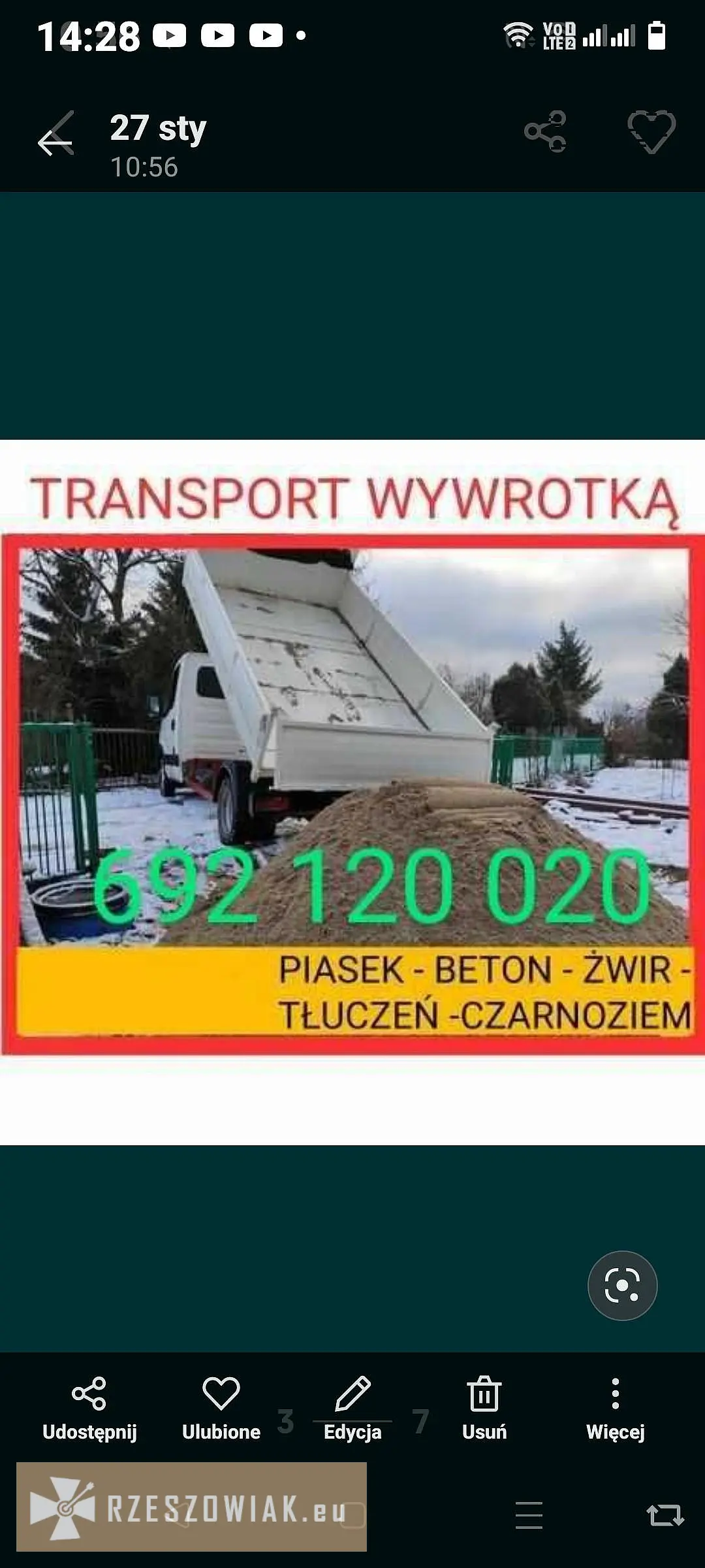 Transport Beton pułsuchy do małych prac auto wywrotka do 3 5tony Rzeszów tel 692120020 kruszywa puasek